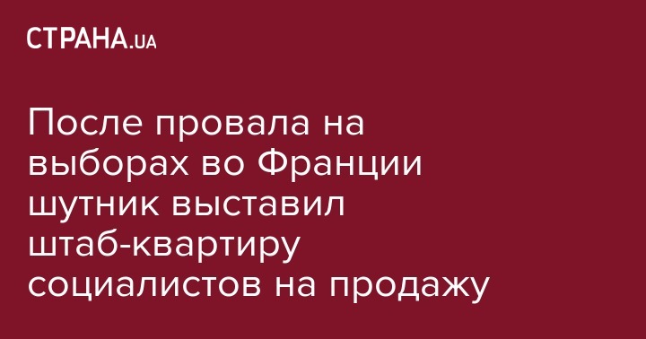 После провала на выборах во Франции шутник выставил штаб-квартиру социалистов на продажу