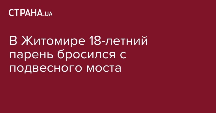 Молодой парень покончил жизнь самоубийством, прыгнув с моста в Житомире. Об этом сообщает УНН со ссылкой на сводку ГУ Нацполиции в Житомирской области.