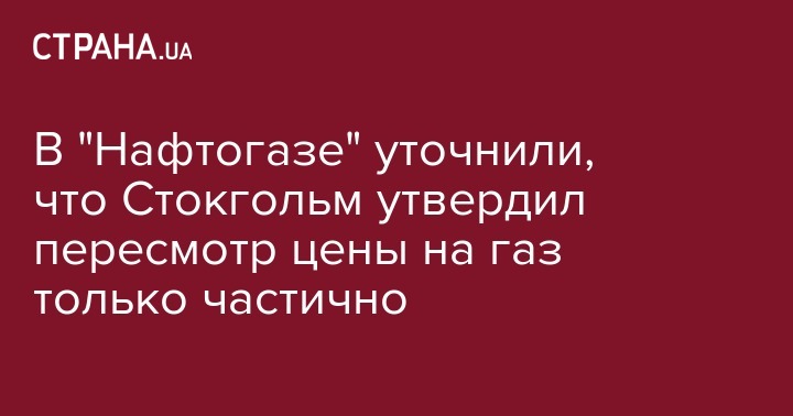 В "Нафтогазе" уточнили, что Стокгольм утвердил пересмотр цены на газ только частично
