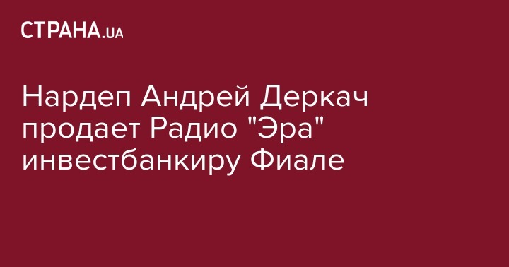 На медиарынке распространяется информация о продаже разговорного Радио "Эра", которое принадлежит народному депутату Андрею Деркачу (внефракционный) известному инвестбанкиру Томашу Фиале, руководителю инвестиционной компании Dragon Capital.