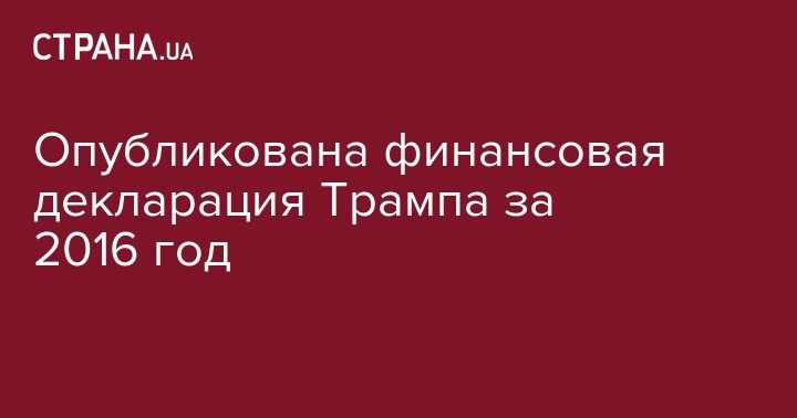 Бюро по вопросам этики при правительстве США опубликовало финансовую декларацию главы государства Дональда Трампа за 2016 год. Документ опубликовала пресс-служба учреждения.
