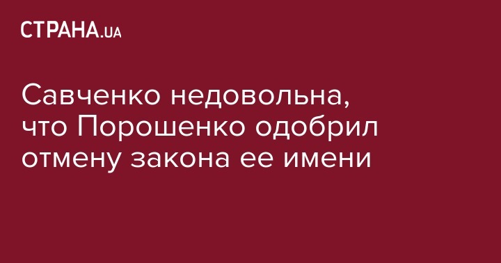 Савченко недовольна, что Порошенко одобрил отмену закона ее имени
