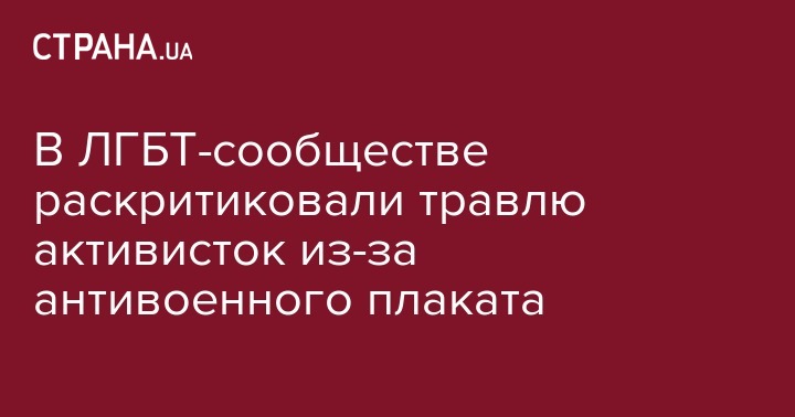 В одном из украинских ЛГБТ-сообществ в Facebook раскритиковали начавшуюся травлю и поиски активистки, которую заподозрили в шествии с антивоенным лозунгом во время прошедшего в Киеве ЛГБТ-парада.