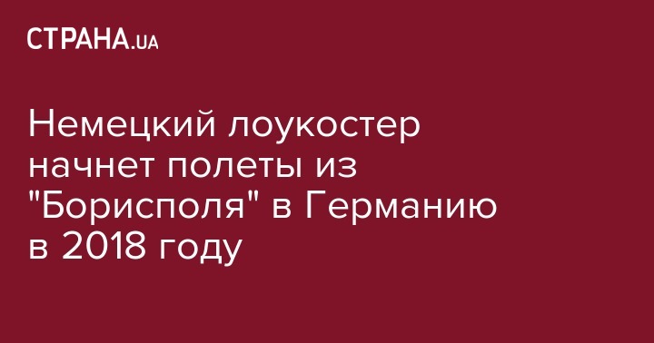 Немецкий лоукостер начнет полеты из "Борисполя" в Германию в 2018 году