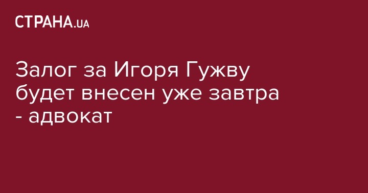 Адвокат главреда "Страны" Игоря Гужвы Елена Лукаш сообщила, что залог за него будет внесен уже завтра, 26 июня. Об этом она написала в Facebook.