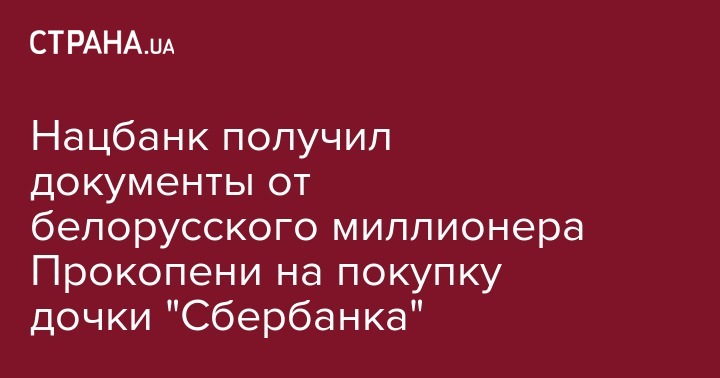 Нацбанк получил документы от белорусского бизнесмена Виктора Прокопени на покупку украинской "дочки" "Сбербанка". Об этом сообщают "Украинские Новости".