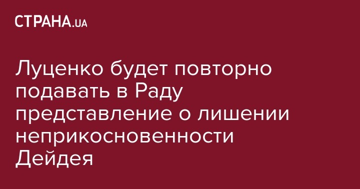 Луценко будет повторно подавать в Раду представление о лишении неприкосновенности Дейдея
