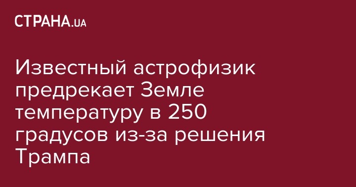 Известный астрофизик предрекает Земле температуру в 250 градусов из-за решения Трампа