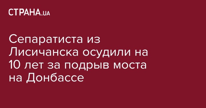 Лисичанский городской суд осудил жителя Лисичанска к 10 годам тюрьмы с конфискацией имущества за подрыв моста соединением Лисичанск - Северодонецк через речку Северский Донец в 2014 году.
