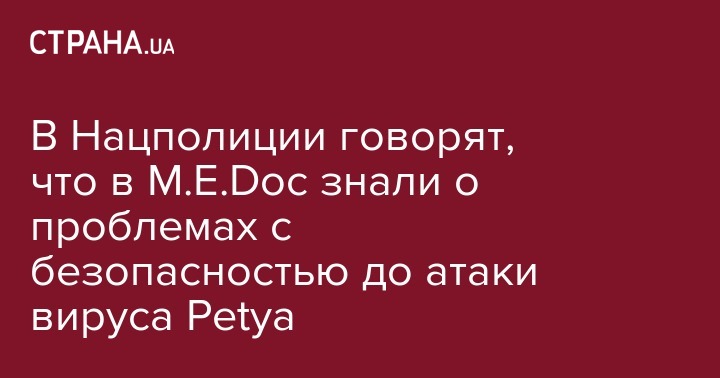Деминюк и другие официальные лица уже заявляли, что кибератака была осуществлена с помощью вредоносного обновления программного обеспечения M.E.Doc, которая используется в бухгалтериях на предприятиях по всей стране.