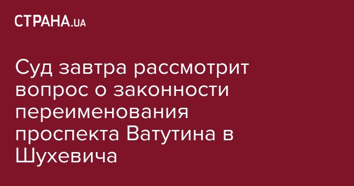 Как сообщала "Страна", процесс переименования проспекта Ватутина в Киеве в честь Шухевича еще не завершен, и в настоящее время магистраль все еще носит имя Ватутина. На данный момент остается в силе решение Окружного админсуда Киева, которым Киевраде запрещено подписывать и публиковать решение от 1 июня о переименование проспекта Ватутина в проспект Шухевича до рассмотрения дела в суде по сути.