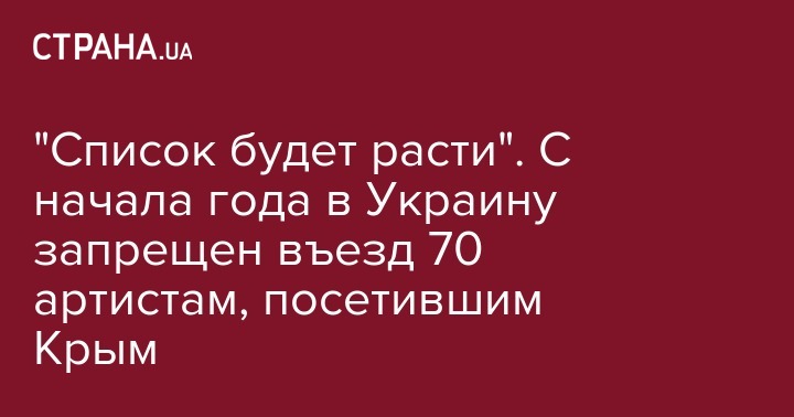 Госпогранслужба Украины с начала года запретила въезд в Украину 70 артистам, в том числе тем, кто в обход украинского законодательства посетил аннексированный Крым.