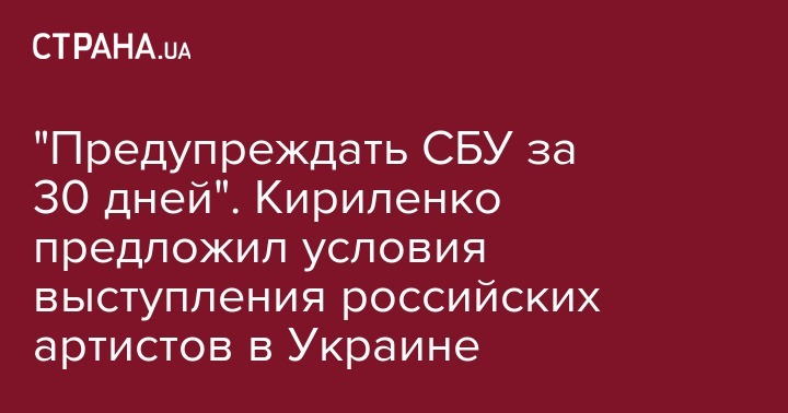 "Предупреждать СБУ за 30 дней". Кириленко предложил условия выступления российских артистов в Украине