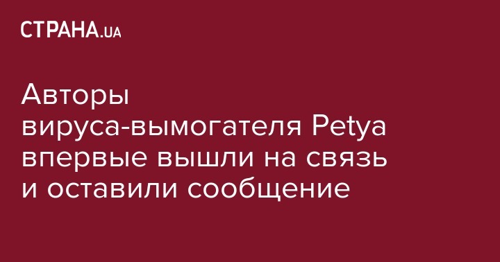Авторы вируса-вымогателя Petya впервые вышли на связь и оставили сообщение