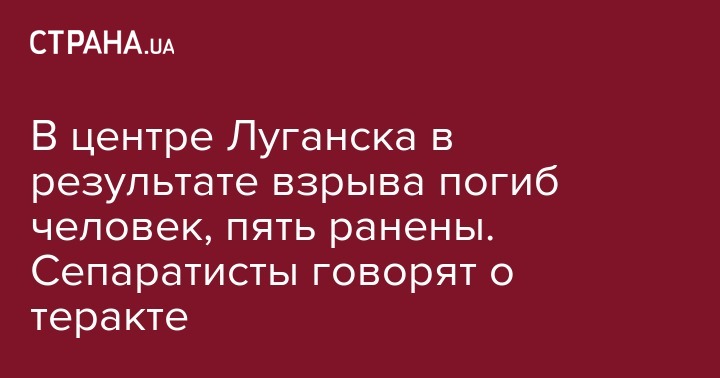 В пятницу в центре Луганска недалеко от площади Героев Великой Отечественной войны произошел взрыв. В результате один человек погиб, пять получили ранения, пишет "ТАСС".