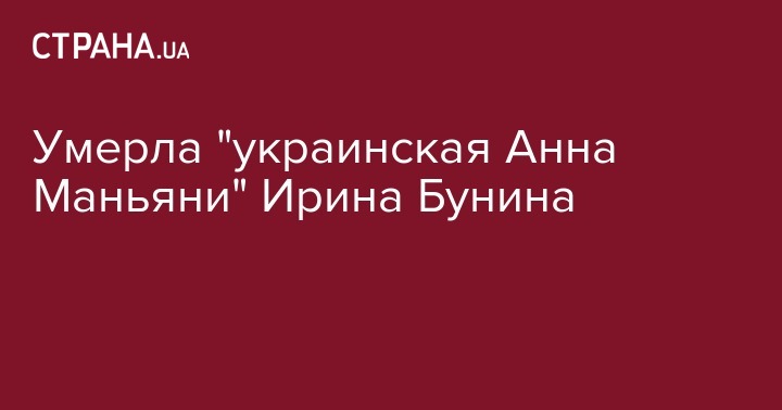 Известная украинская актриса Ирина Бунина скончалась на 78-м году жизни. Об этом в своем Facebook сообщил театральный критик, заслуженный журналист Украины Олег Вергелис.