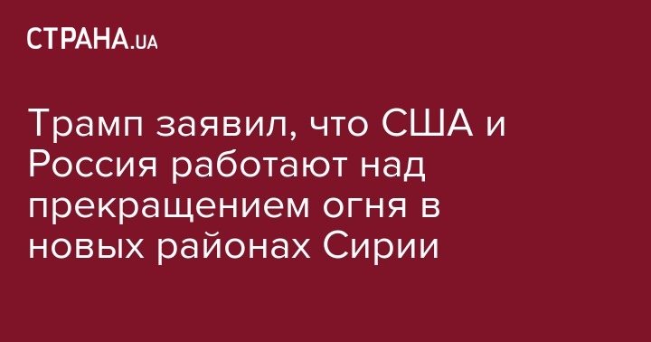 "Поэтому, благодаря определенной коммуникации и диалогу, мы смогли достичь режима прекращения огня. И это будет продолжаться некоторое время, и, откровенно говоря, мы работаем над вторым этапом прекращения огня в очень неспокойной части Сирии. И если мы достигнем этого, и вдруг еще в нескольких районах, вы получите ситуацию, когда не будут происходить выстрелы в Сирии", - сказал Трамп.