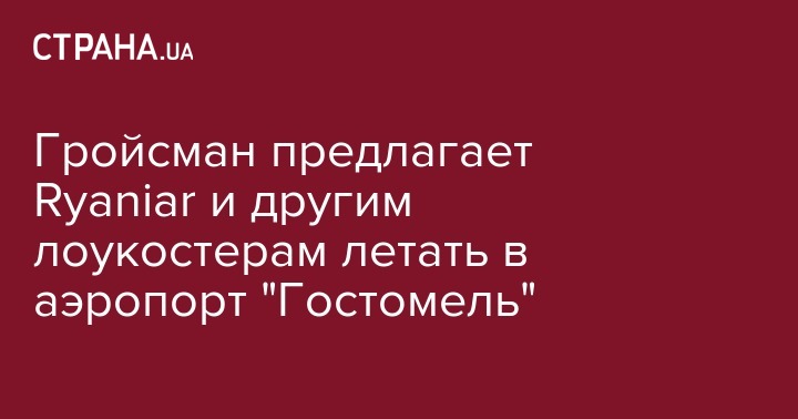 Гройсман предлагает Ryaniar и другим лоукостерам летать в аэропорт "Гостомель"