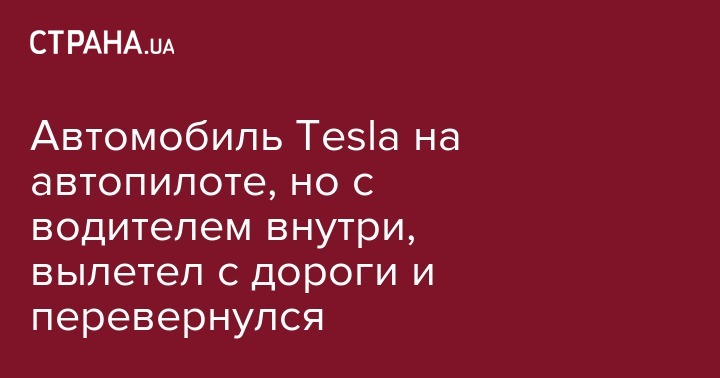 Автомобиль Tesla на автопилоте, но с водителем внутри, вылетел с дороги и перевернулся