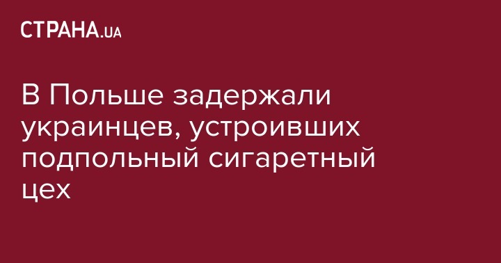 "Даа граждан Украины и гражданка Польши устроили подпольный цех изготовления табачных изделий. Варшавская полиция задержала их недалеко от столицы Польши и изъяла 145 тыс. штук сигарет и более 300 кг резаного табака," - сообщает сайт.