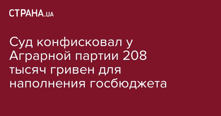 Суд конфисковал у Аграрной партии 208 тысяч гривен для наполнения госбюджета