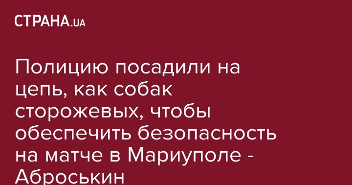 "Стоял вопрос запретить проведение матча, так как они (ФК "Мариуполь") не выполнили тех обязанностей, которые были с нами оговорены для обеспечения безопасности. Но, как всегда, мы выскочили на сотрудниках полиции и СБУ, которым сели на шею, загнали на три дня на улицы города, посадили на цепь, как собак сторожевых, возле стадиона и три дня и три ночи охраняли этот стадион. И те металлодетекторы, которые мне руководство посольства США в количестве более 70 штук передало для работы на блокпостах, мы должны были собрать со всей области и отдать для обеспечения одного матча в Мариуполе. Потому что не готов был клуб к этой истории", - рассказал Аброськин.