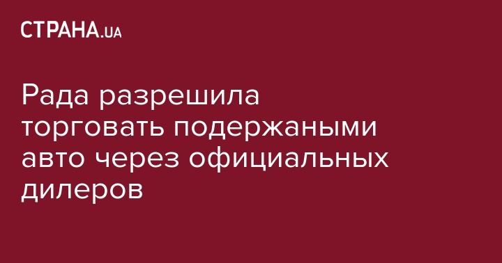 Сегодня,Верховная Рада приняла закон "О внесении изменений в Налоговый кодекс Украины относительно стимулирования развития рынка бывших в употреблении товаров" (№3046-д), который предполагает легализацию продаж бывших в употреблении автомобилей через официальных автодилеров, а также изменение структуры налоговых поступлений от перепродажи таких авто. Об этом сообщает "УНИАН".