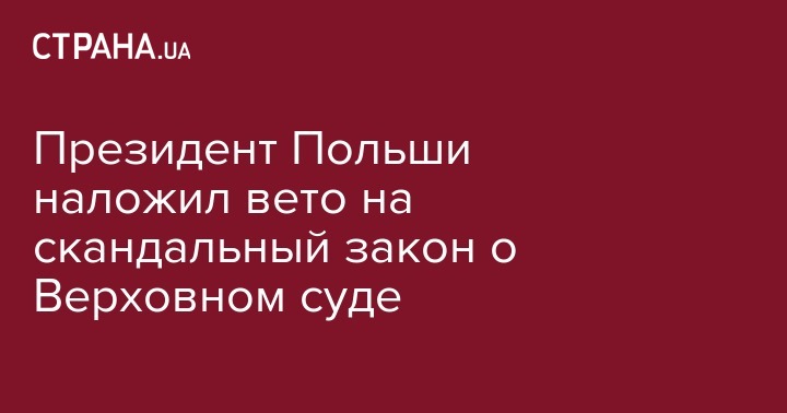 Президент Польши наложил вето на скандальный закон о Верховном суде