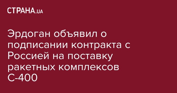 Президент Турции Реджеп Тайип Эрдоган объявил о подписании контракта с Россией на поставку новейших зенитных ракетных систем ПВО С-400. Об этом во вторник, 25 июля 2017 передает агентство Reuters.