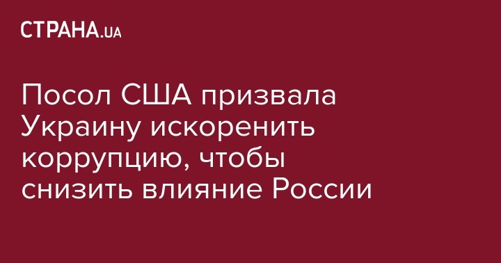 Посол США призвала Украину искоренить коррупцию, чтобы снизить влияние России