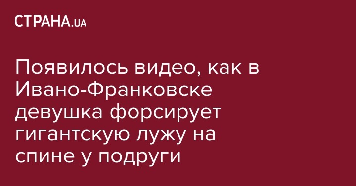 Появилось видео, как в Ивано-Франковске девушка форсирует гигантскую лужу на спине у подруги