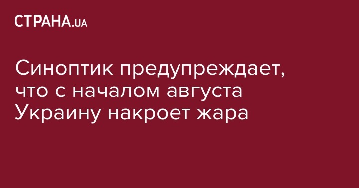 С 1 августа территорию Украины накроет сильной жарой. Об этом на Facebook-странице сообщила синоптик Наталья Диденко.