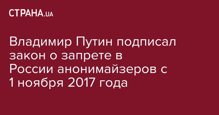 Cегодня, 30 июля, российский президент Владимир Путин подписал закон о запрете анонимайзеров, с помощью которых интернет-пользователи обходят блокировку интернет-сайтов. Документ опубликован на официальном интернет-портале правовой информации в Российской Федерации.