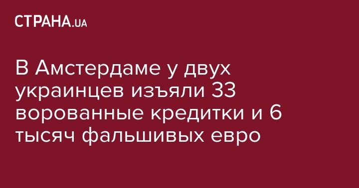 В амстердамском аэропорту Схипол полиция задержала двух граждан Украины с украденными кредитными карточками и фальшивыми евро. Как сообщают нидерландские СМИ, 31-летний и 47-летний украинцы летели из Киева в Испанию с пересадкой в Схиполе.