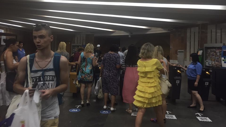 На станции метро Кловская непривычные очереди, фото: facebook.com/t.nikolayenko