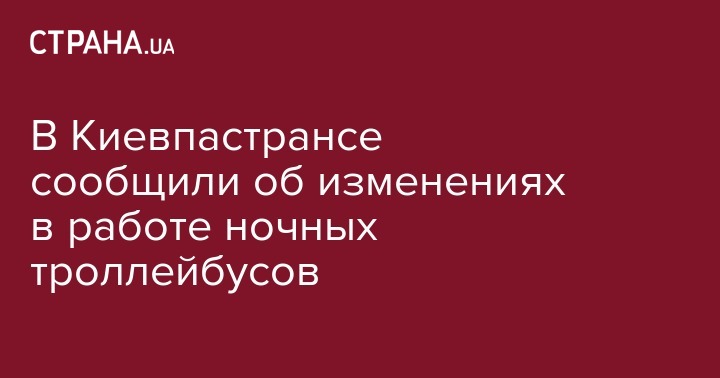 В КП "Киевпастранс" сообщили об изменениях в работе некоторых ночных троллейбусов столицы. Об этом говорится на сайте предприятия.