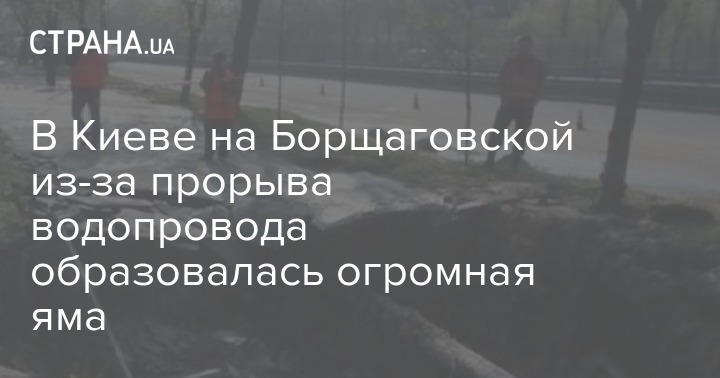 В Киеве на Борщаговской из-за прорыва водопровода образовалась огромная яма