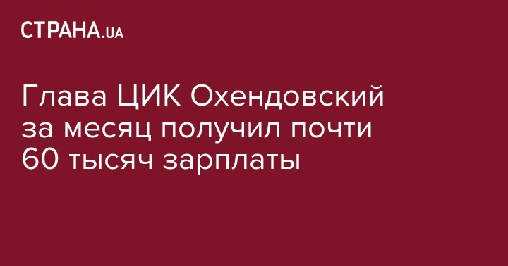 Заработная плата председателя Центральной избирательной комиссии Михаила Охендовского за июль составила 58 тыс. 351 гривну. Об этом говорится в ответе секретариата ЦИК на запрос "Украинских новостей".