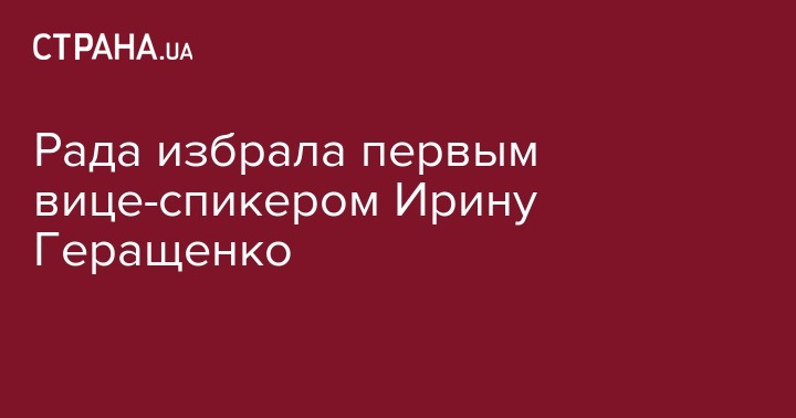 Верховная Рада Украины (ВРУ) избрала первым вице-спикером народного депутата, члена фракции "Блок Петра Порошенко" Ирину Геращенко. Соответствующее решение поддержали 260 народных депутатов.