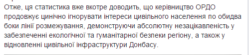 По подсчетам коммунальных служб Торецка, ежедневно с водовода вытекает около 12 тысяч кубометров воды, из-за чего почти 35 тысяч жителей города получат воду только 2 часа в сутки. Как указывается в сообщении, "с повышением температуры воздуха, Торецк живет под постоянной угрозой возникновения эпидемии инфекционных заболеваний". При этом в Общий центр координации и контроля направлено 8 заявок на обеспечение безопасности для проведения ремонта, но "ни одного ответа на эти заявки, от руководства ОРДО до сих пор не получено".