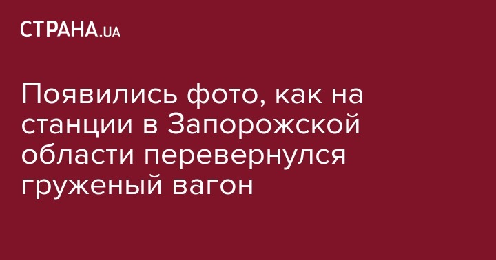 Появились фото, как на станции в Запорожской области перевернулся груженый вагон