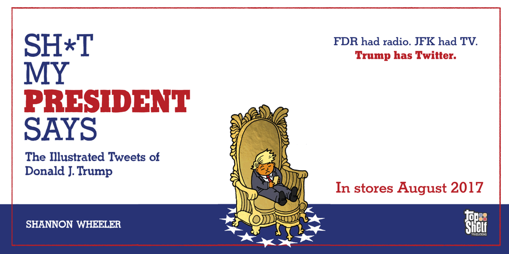 Там собраны примерно 140 твитов (публикаций по 140 символов) американского лидера. Получившийся альбом с иллюстрациями назвали "Sh*t My President Says: The Illustrated Tweets of Donald J. Trump".  - "Эх, Мой Президент Говорит: Иллюстрированные твитты Дональда Джона Трампа".