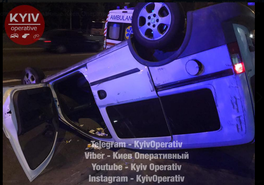 Сегодня ночью в Шевченковском районе Киева, недалеко от метро "Дорогожичи", произошло ДТП с опрокидыванием. Об этом в Facebook информирует "Киев Оперативный".