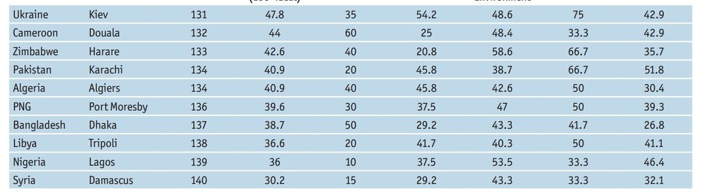 Худшие города мира для жизни, фото: www.eiu.com