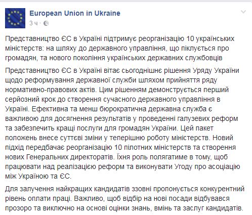 Европейский союз намерен выделить Украине более 100 млн. евро для проведения реформы государственного управления. Об этом заявили в представительстве Евросоюза в Украине на своей странице в Facebook.