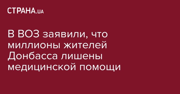 В ВОЗ заявили, что миллионы жителей Донбасса лишены медицинской помощи