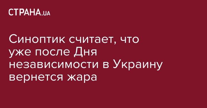 Синоптик считает, что уже после Дня независимости в Украину вернется жара