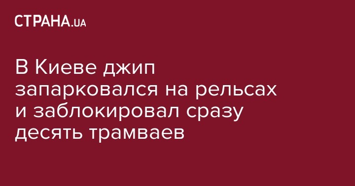 В Киеве джип запарковался на рельсах и заблокировал сразу десять трамваев