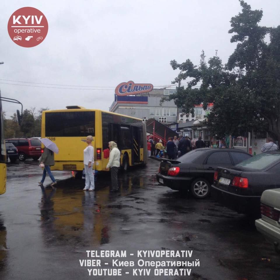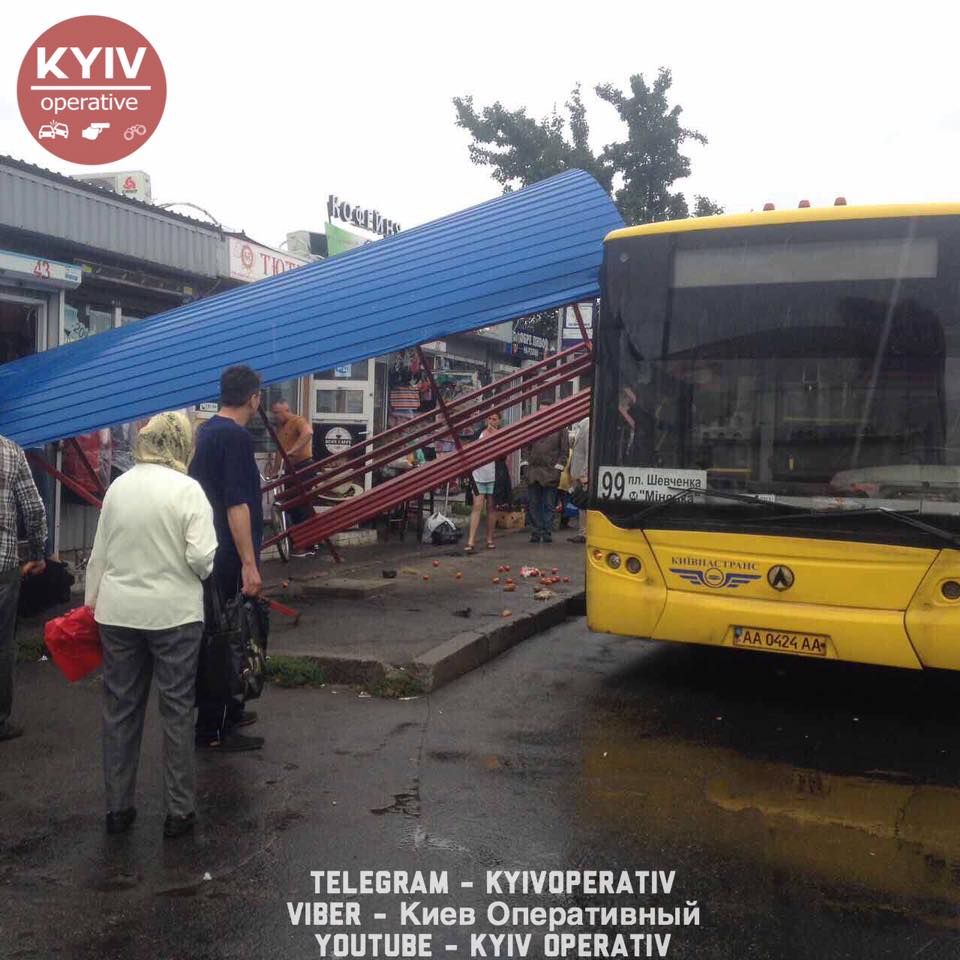 "На площади Тараса Шевченко водитель 99 автобуса, д.н.з. # AA0424AA, тормозя возле остановки, немного не рассчитал габариты и въехал в остановку. От удара сооружение снесло с места. Людей, что сидели на остановке, разбросало по асфальту", - говорится в сообщении.