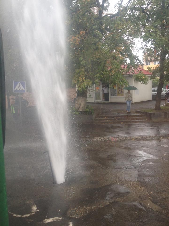 В центре Львове из-под асфальта бьет мощная струя высотой с двухэтажный дом